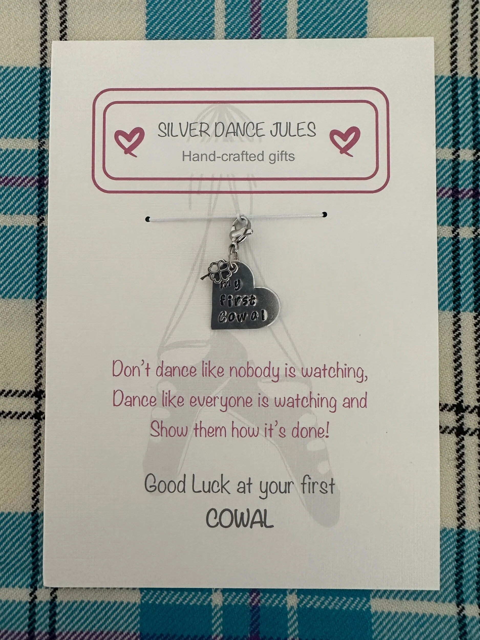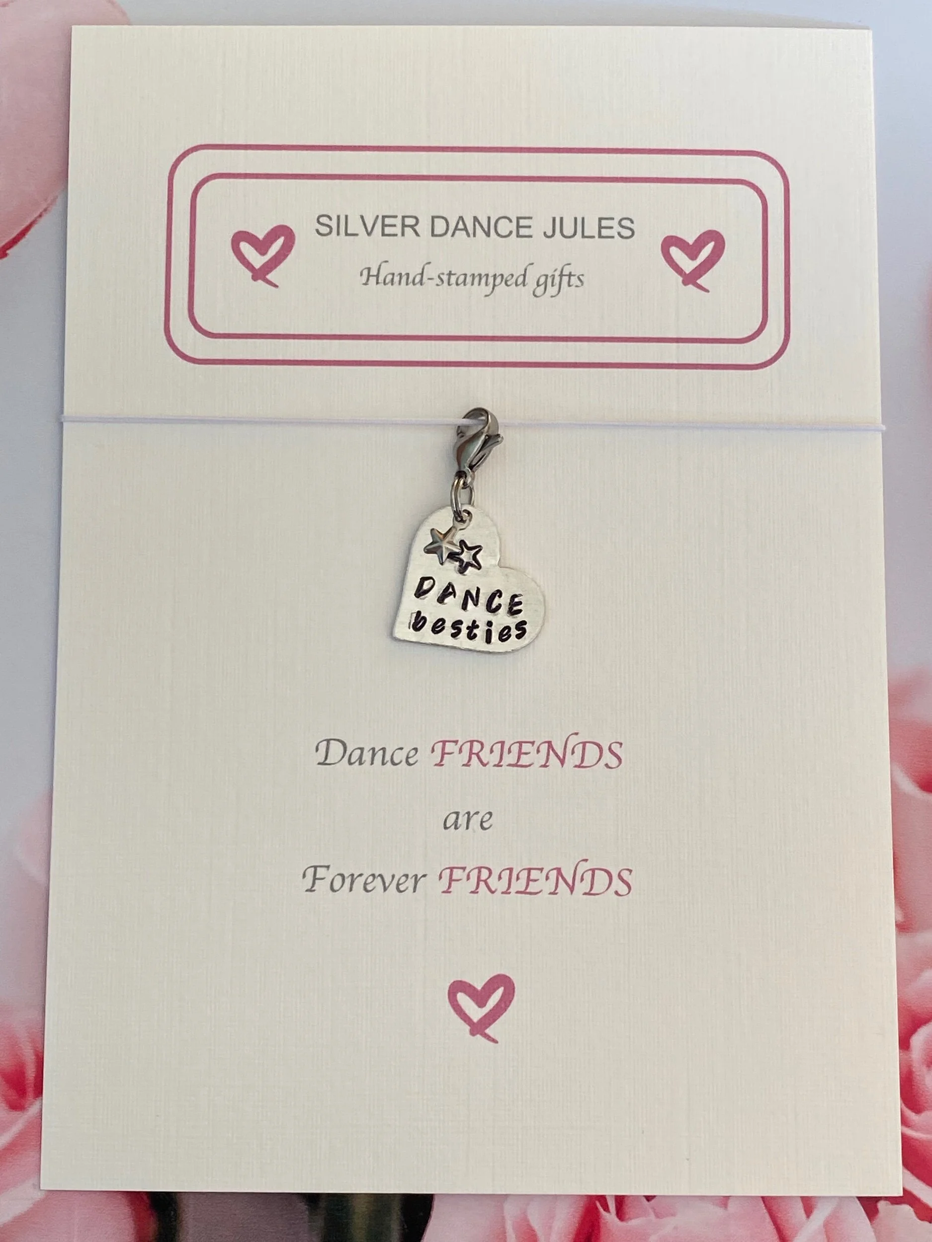These beautiful hand-stamped charms are delivered on a thoughtful keepsake card that allows you to write a more personal message to the recipient. So send a charm to a dancer, teacher or dance mum/gran that you know to mark an occasion, save a memory, or send a message. Free UK delivery on all orders.